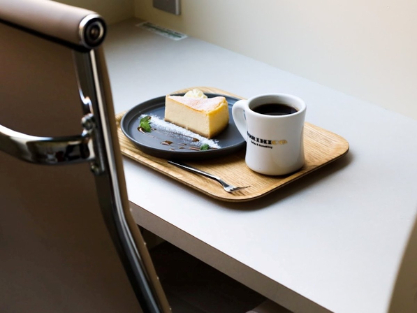 デスクのついた客室で、「MORIHICO.」のコーヒーを嗜みながら優雅に作業!