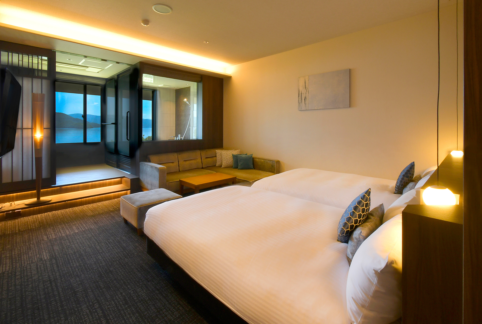 • 【禁煙】温泉かけ流し展望風呂付デラックスツイン(38平米)
