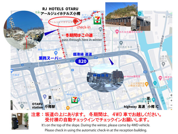 google mapで「アールジェイホテルズ小樽」検索していただき確認の上お越しください。