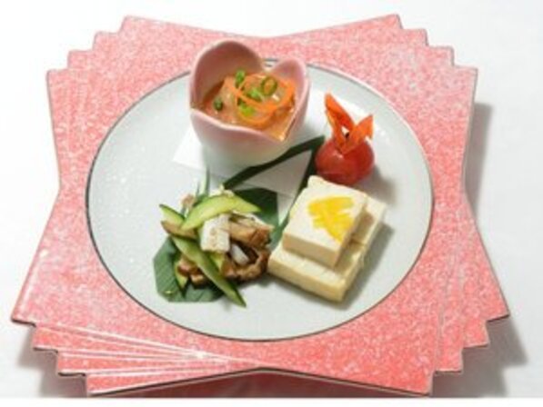 ~お品書き一例~ プラス日本酒用あて3品盛り付け