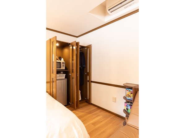 ・無料Wi-Fi・液晶ハイビジョンTV・衛星放送・ケーブルTV・湯沸かしポット・お茶コーヒーセット・冷凍冷蔵庫・ドライヤー・電気スタンド・加湿器・個別空調・洗浄機付トイレ・ボディーソープ、シャンプー、コンディショナー・洗顔ソープ・アメニティ各種・ナイトウェア・バスローブ・スリッパ・電子レンジ・ボードゲーム