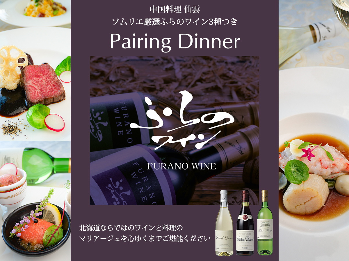 【ふらのワインと味わう中国料理】ソムリエ厳選3種のワイン×「仙雲」ペアリングディナーコース/朝夕