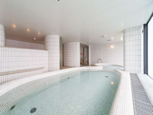 • 最上階大浴場(女性)/白タイルを基調としたシンブルなデザインです。