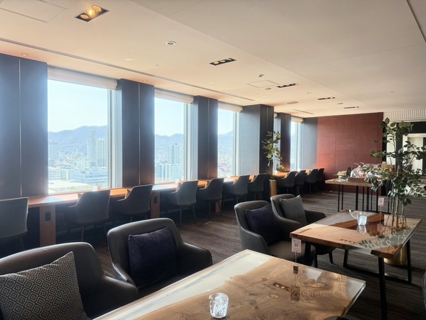 ホテル最上階からの景色とともに、お飲み物やお菓子でリラックスタイムをお過ごしください。