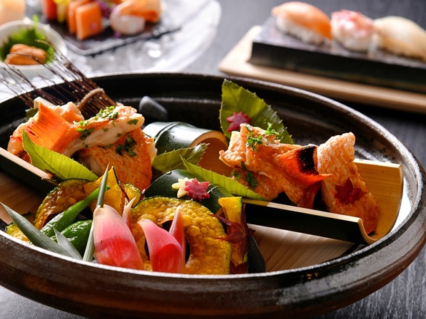 【夕食:四ツ星コース】全道各地の旬の魚介 北国らしい豪快な盛り付けも魅力! 特別会席「絢音」