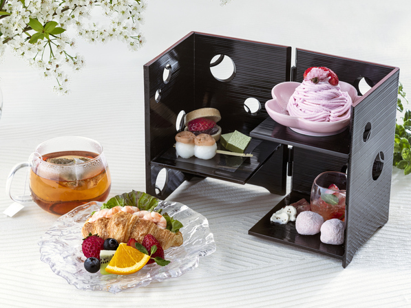 【ご褒美プラン】黒漆の器に映える、春の彩り。和魂洋才のアフタヌーンティー付き【銀の月】