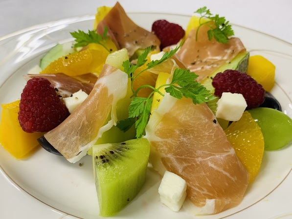 ・1部屋につきハモンセラーノ(生ハム)フルーツサラダ仕立て1皿付き