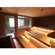 【貸切サウナ「翠山熱波」(有料)】12平米の広々空間にHARVIAのCILINDROを2台設置。セルフロウリュも可能