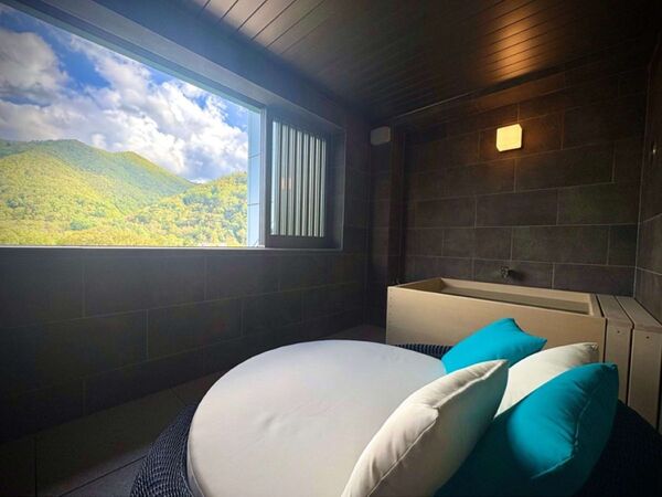 【サウナ&展望風呂付洋室(75平米)】窓を大きく開けて外気浴もお愉しみいただけます。