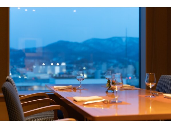 小樽の街並みを眺められる最上階のレストランで愉しめる季節のフレンチディナーをご賞味いただけます。