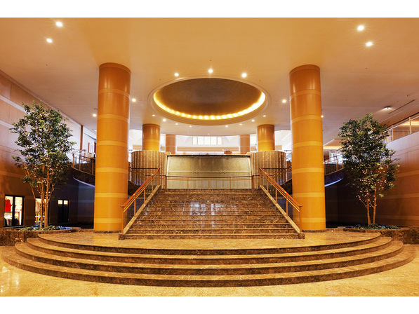 駐車場へはホテル正面より地下へお入りいただけます。正面は建物の山側(線路側)にございます。