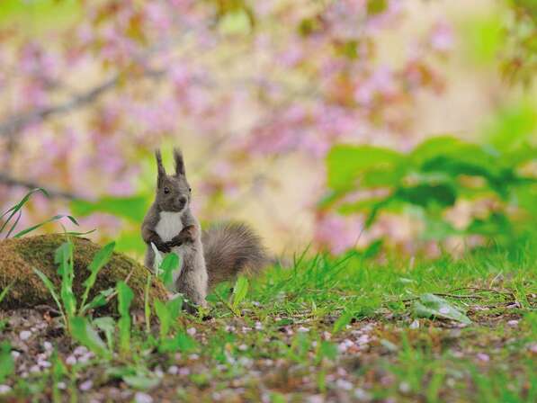 • カナダ産木材を贅沢に使用した平屋建てログホテル。森林に囲まれた敷地では四季折々の景色を楽しめます