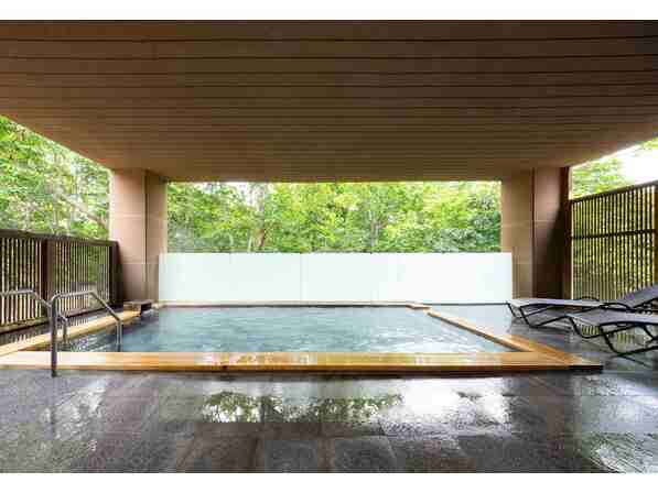 ニセコの老舗リゾートホテル「ホテル甘露の森」では、2つの天空露天風呂をお楽しみいただけます。サウナ室付きの大浴場からニセコの早春の景色を楽しみましょう。