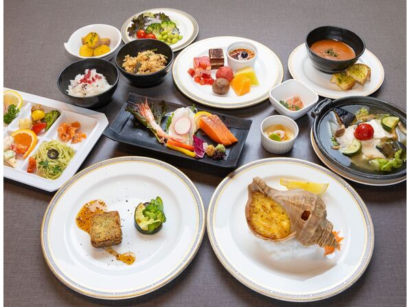 夕食:レストラン食となります。ブッフェ&3品のお品をご堪能ください。午後5時30分から午後7時までにご入場ください。レストランクローズ午後9時