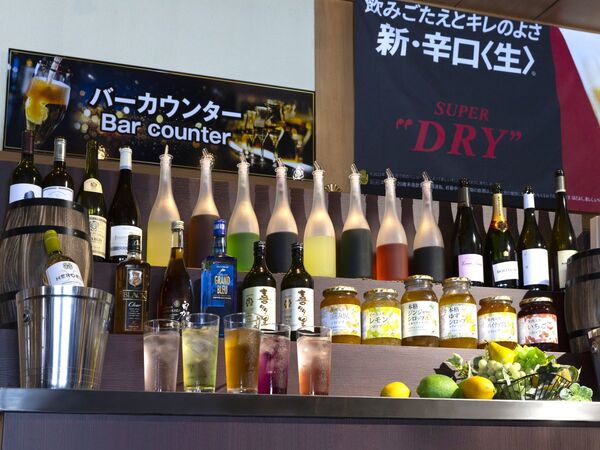 バーカウンターでは日本酒、ウイスキー、ワインなど多種類のアルコールをご用意しております。