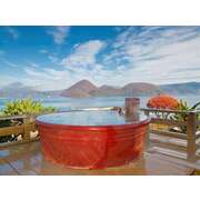 晴れた日には山間に羊蹄山も望める絶景露天風呂.陶器の浴槽で「熱の湯」をお楽しみ下さい。