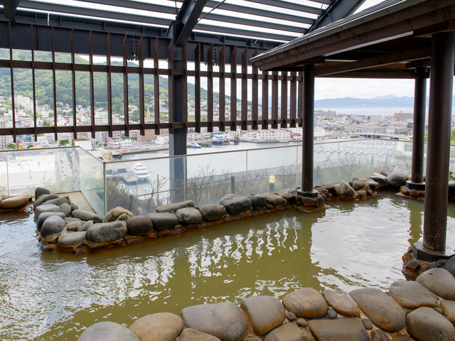 最上階の露天風呂では塩分の強いトロリとした温泉につかり、体の芯からお寛ぎ頂けます。