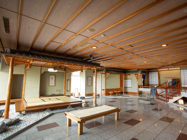 露天風呂を備えた大浴場は長さ30mのガラス張り。