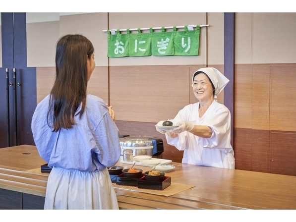 • 【朝食ブッフェ】目の前で握るおにぎりサービスが大人気です。
