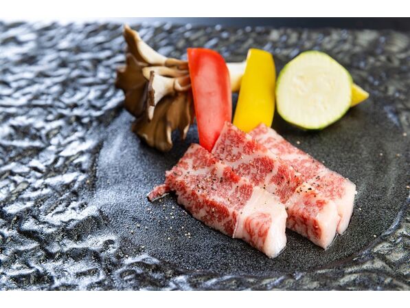白老牛ロース網焼き、上川チーズ工房フロマージュチーズと百合根のマッシュ等、