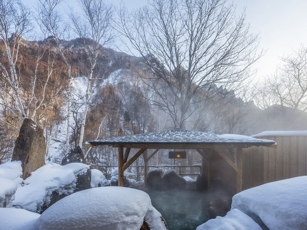 【5階 冬の峡谷露天風呂】頬に当たる冷たい風のおかげで思わず長風呂になってしまいます。