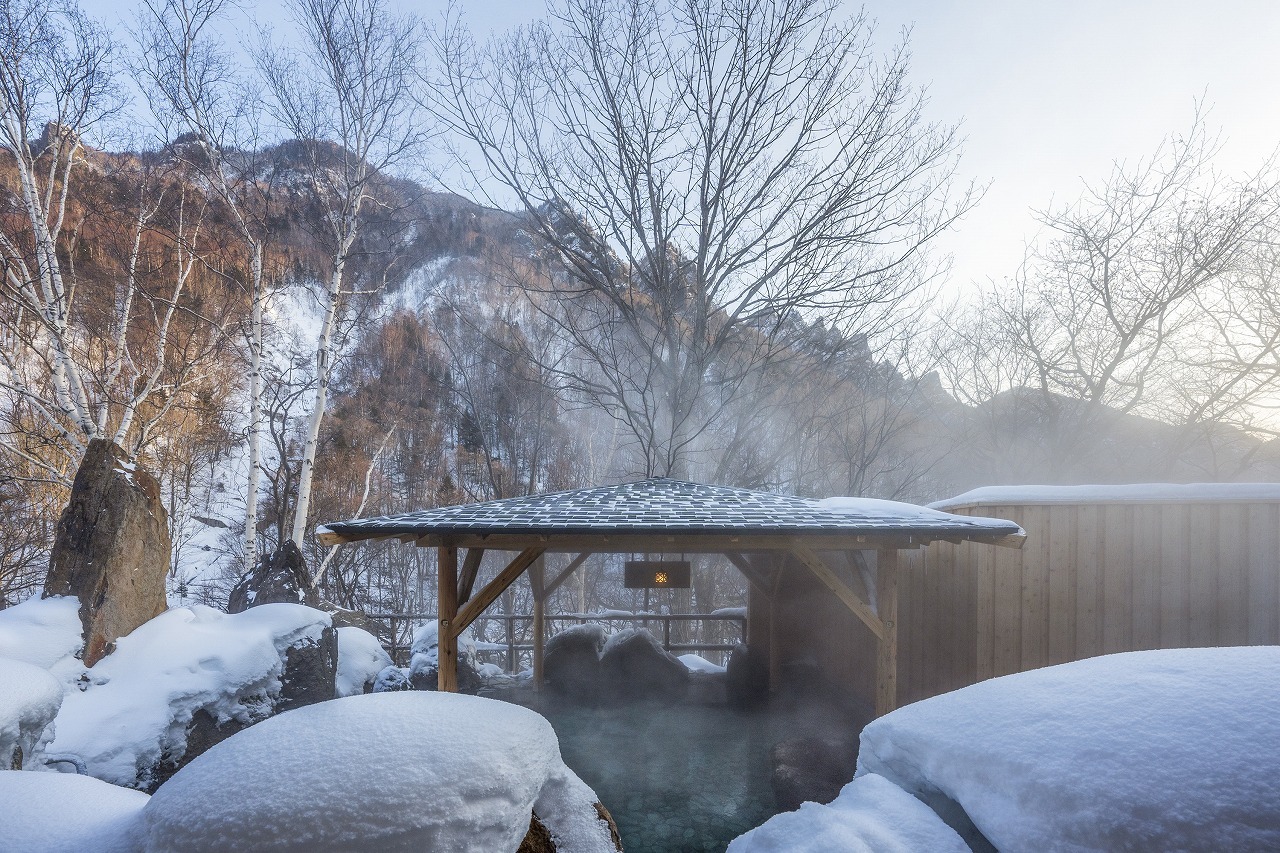 自然湧出の源泉で溢れる露天風呂から眺める峡谷の四季はお客様を癒してくれます。