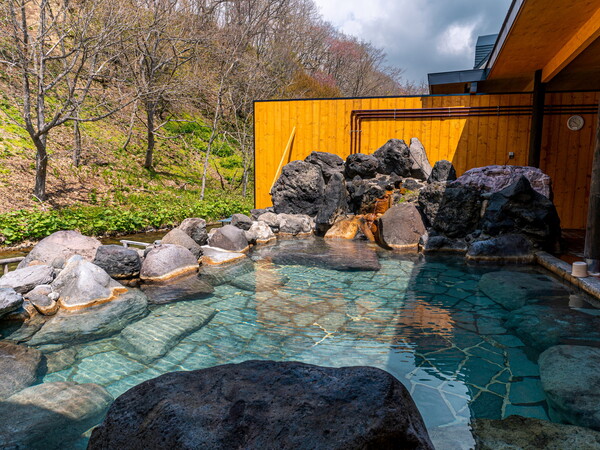 お湯処。天然温泉100%の養老牛温泉です。露天風呂には男性6種、女性4種の浴場をご用意しております。