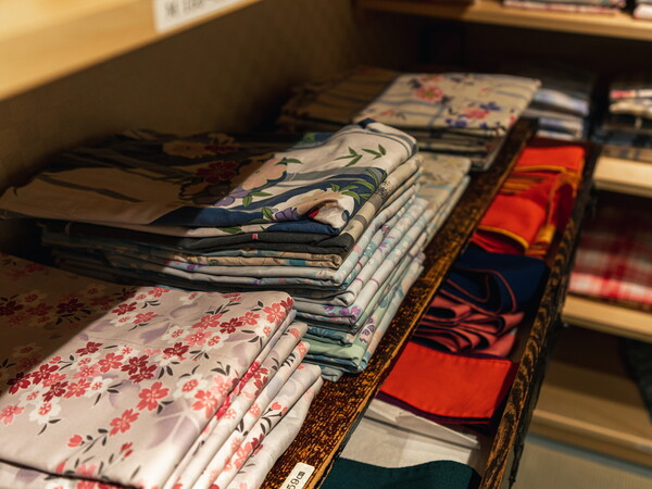 数多く並んだ浴衣の中から、お気に入りの一着をお選びください。