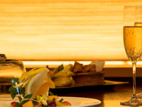 豊洲亭ご宿泊者のチェックインは、豊洲亭専用クラブラウンジにて。ウエルカムドリンクサービスとともに