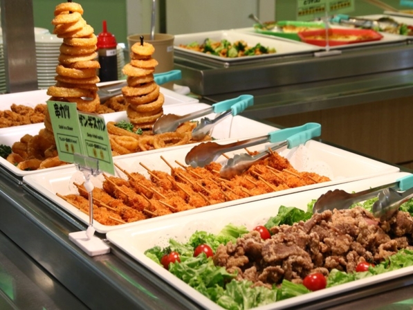 • 夕食バイキング_オープンキッチンではお肉類の焼き物やラーメン等を提供しております。