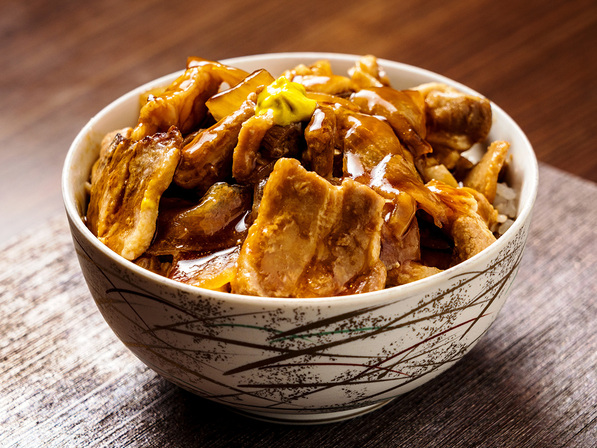 特選バラ肉を使用し、洋がらしを添えた特製やきとり丼です。