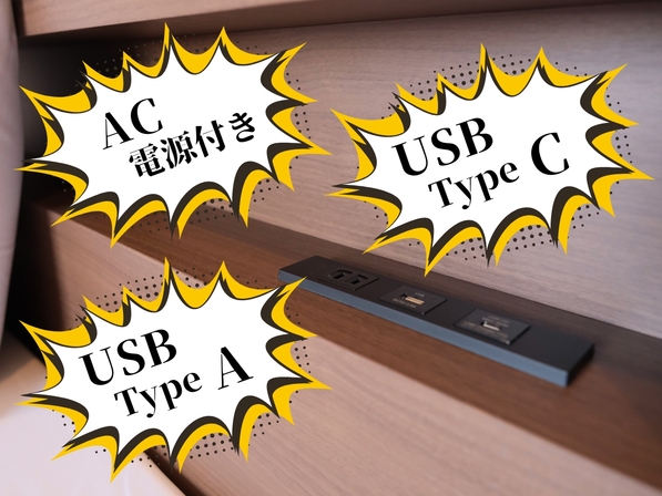 ○ベッドボードに「AC電源/USB-C/USB-A」設置