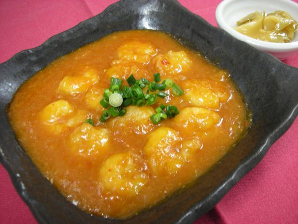 夕食レストランメニュー エビチリ定食