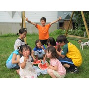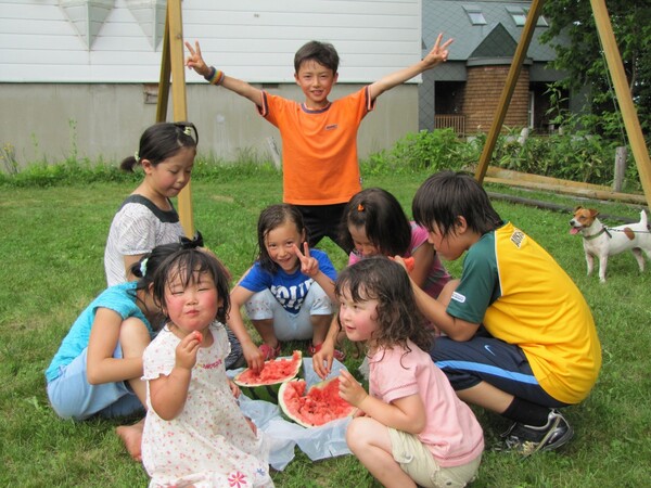 お子様も大歓迎!裏庭でのバーベキューも大盛り上がり。