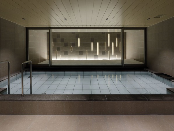 プライベートな印象を大切に落ち着いた空間としてデザインされた大浴場。窓先の雪原をイメーシした石庭を眺め、ゆっくりとした時間をお過ごしいただけます。