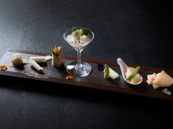 新鮮魚介を活かす和の技術に洋食のテイストを織り交ぜた遊び心が光るオリジナルの料理をお愉しみ下さい。