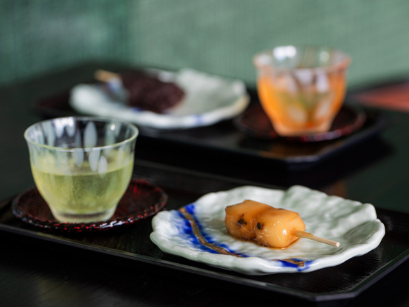 • 【ウォーターサイドカフェ YUGEN】チェックイン時のおもてなし。函館の老舗菓子店「銀月」のお団子とお茶※イメージ