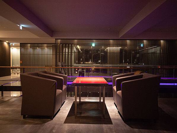 最上階にしつらえられたサロンからの眺めは函館の夜景が星のように眼下に輝き、まるで星空に浮かんでいるかのような気分に。