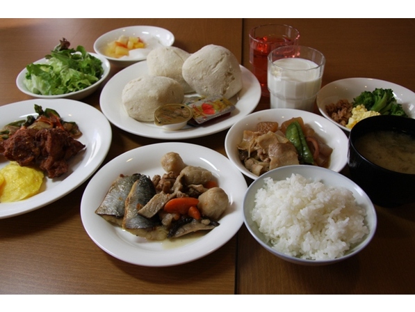 日替わりの手作り料理や焼き魚など栄養バランスを考えた豊富なメニューで