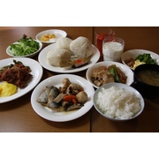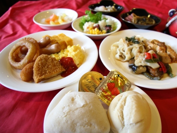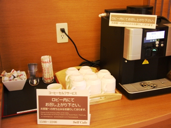 フロント横の朝食レストラン【花茶屋】にて7時~9時半まで無料朝食ご用意しております。