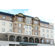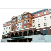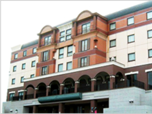 小高い丘の上に佇む外観は、アーチの美しいヨーロッパ風建築。