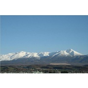 春の十勝岳:ホテルから眺める十勝岳の風景