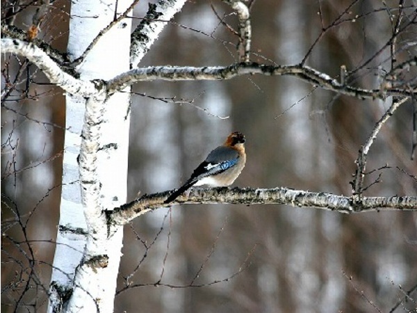 春の風景:白樺の森にも小鳥とともに遅い春がやってきます。