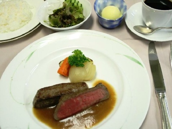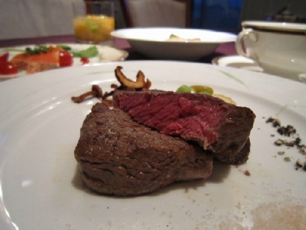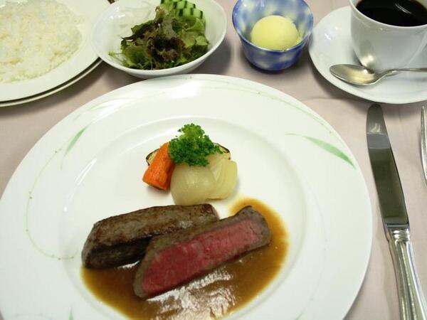 ふらの和牛のステーキシンプルに岩塩で(夕食 肉料理一例)