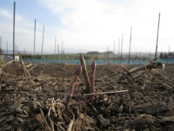 当ホテルで採れるアスパラ。有機農法で育てたアスパラは地方発送も承っております。