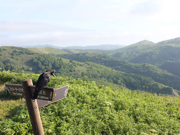 日本最北端の礼文島。高山花の散策路、桃岩展望台の山並を背にして建つ当館で憩いのひと時を。