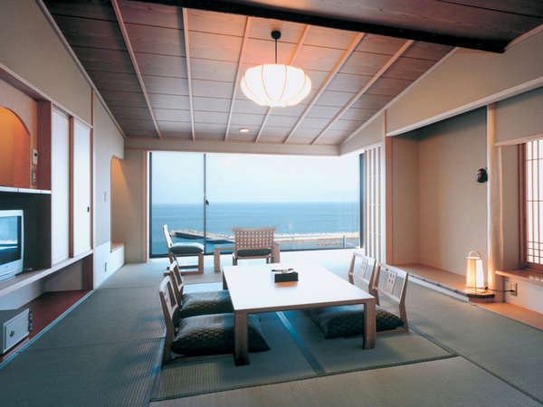 和室14帖【海側】利尻富士が一望できる大きな窓。日本最北端の礼文島から眺める景色をお楽しみ下さい。