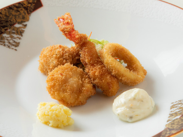 【青函市場・夕食一例】夕食実演コーナーではアツアツ出来立てをご提供
