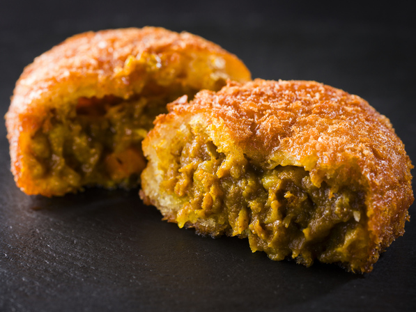 オープンキッチンでは、料理人が目の前で揚げたてカレーパンをご提供。