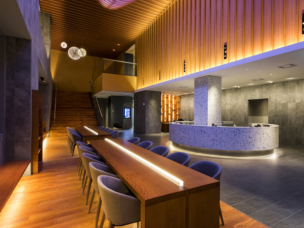 • 【ロビー】落ち着いた雰囲気の円卓チチェックインカウンターでお客様のお越しをお待ちしております。